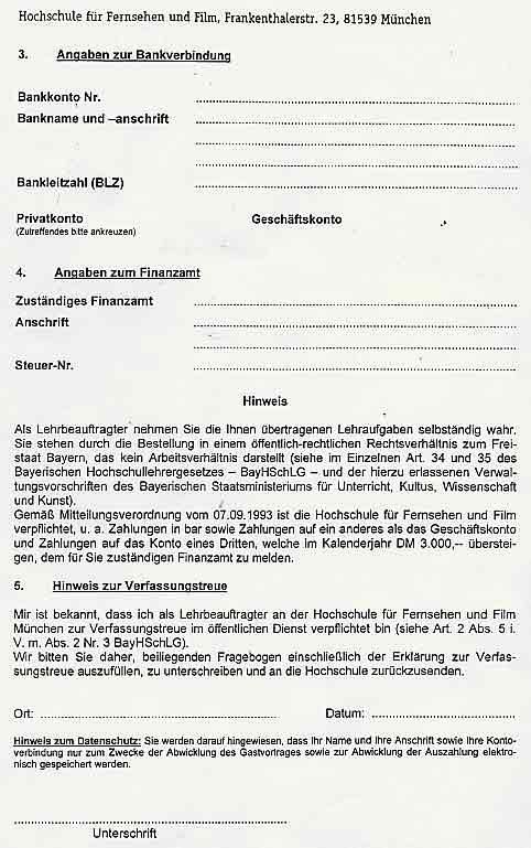 Papiere zur Honorierung (150 E/2Std.)mit beigelegten