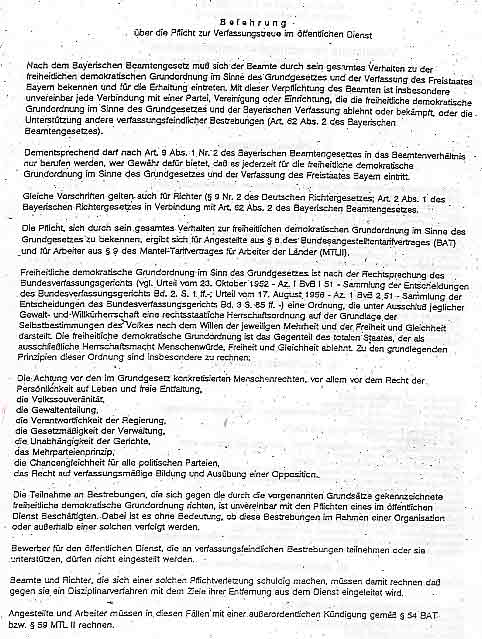 Erklärungsverpflichtungen zur Verfassungstreue.