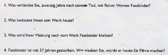 Sicher verbindet eine gewisse geheime Nachbarschaft im totalen Kontrast. Er war der einzige der Kollegen, der meine Filme ansah, der wohl wissen wollte, was machte denn der, wenn auch sicher irritiert. Die Radikalität der vielstimmigen Monologe, im weiblichen Kosmos gespiegelt hier, hat er nicht mehr erlebt, hätte ihn sicher verwundernd interessiert.