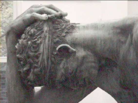 Mit gesenktem Kopf und halbverborgenem Gesicht wartend auf ihr Ende.