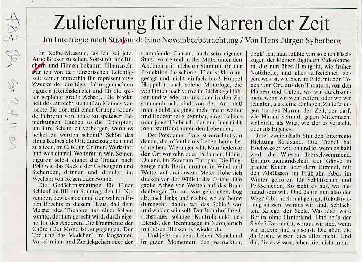 Ausgabe Sa.14.11.01 schade. Zulieferungen für den Narren,wäre richtiger,