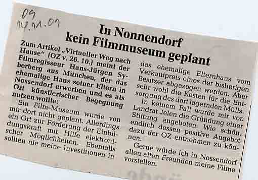 kein Filmmuseum zu gründen gedenke. Und sie nicht hören wollen was.