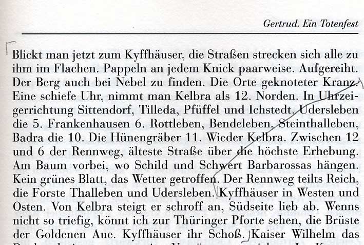 Am 9.Novermber als Ende der Schleef gewidmeten Ausstellung unserer Art, die Lesung des" wahren Textes" der Gertrud als Theaterfassung, wie Schleef sie entworfen, als Chor ,-einer Stimme-in Neuhardenberg, J.H. Eingerichtet, organiesiert: G.A. der Freund. Nein nicht Seidenhase, harmlos, hoppelt nicht herum, wie der grosse Freund sagte, wenn man nach jenem fragte. Auch ein schlimmer, der grosse, . Aber: was für einer. Einar. Der durfte . Der andere aber hoppelt und kratzt weg und scheisst hin und setzt seine Losung drauf, auf alle Wege, und wundert sich wenns nur Köttel sind. Hasenpfote heil. Mehr nicht.