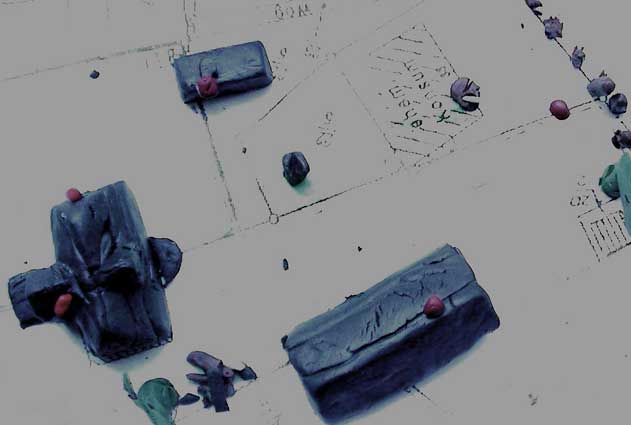 5.Kamera, beweglich zeigt den Blick auf den Hof oder das Dorf in Richtung Mülltonen/Kirchturm oder ambulant aufgenommenen Ausschnitte aus der Umgebung, eindigitalisiert.