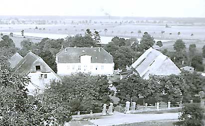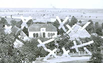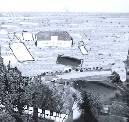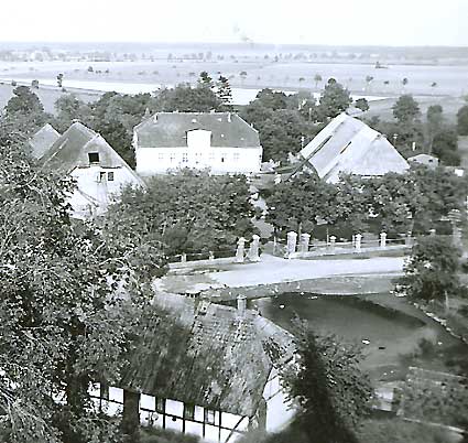 zum Tanzen und, wo die gefangenen wohnten. Hinten Koppeln und Felder unverbaut.