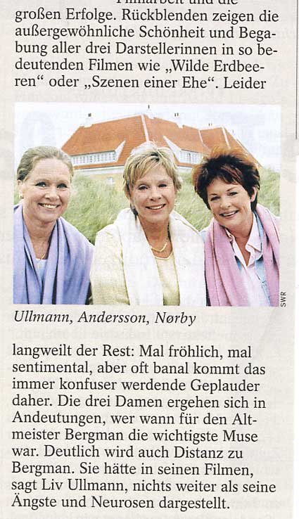 Besetzungen um zu illustrieren, Welt und Leben. Aber auch des eigenen. Wie hier. Geschichte der Seele des Autor der Filme. Auch mit persönlicher Verbindung im Privaten. Ängste abladen, Probleme, Fragen darstellen, austragen. Und, wenn es Frauen sind, durch den Mann. Und sie? Wo bleiben dann sie? zunächst werden sie motiviert, ihm dienend , und dann, wenn er sich entladen hat, allein gelassen, ohne zu sich gekommen zu sein, Kunst des Defekts, der Zweifle, Verzweiflungen, die ihn ehren, ihn, so sehr auch ihm gemäss, ihr? so sehr auch sogar zu Bild und Geschichte geworden, der Kulturen aller, die teilhaben. Und Sie? und dann er, ohne Sie? die er benutzte, so sehr sie teilhatten, aber immer an seiner Tat. An sich, seinem. Masken Spiele. Hier der höheren Weihen, des Ausdrucks. Der Zeit. Gerade darum interessant. Zur Form gekommen.Die Frau als zu gebrauchende, zu verbrauchende. Spenderin-Muse und Gefäss. Picasso bis Richard Wagner. Das Mass der Intuition schafft die Höhe der Initiation. In ihr sich finden ohne zu verschwinden ein anderes. Ist, machen, werdend. Geheimnis. Gestalten höchstes.