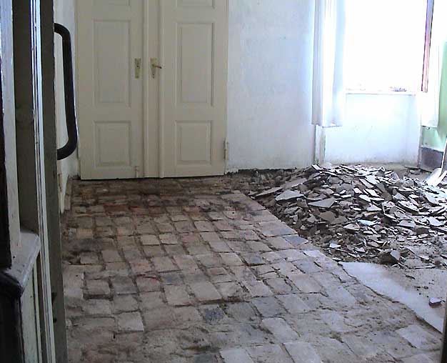 verbrannte Dielen oben nach dem Brand instandgesetzt
