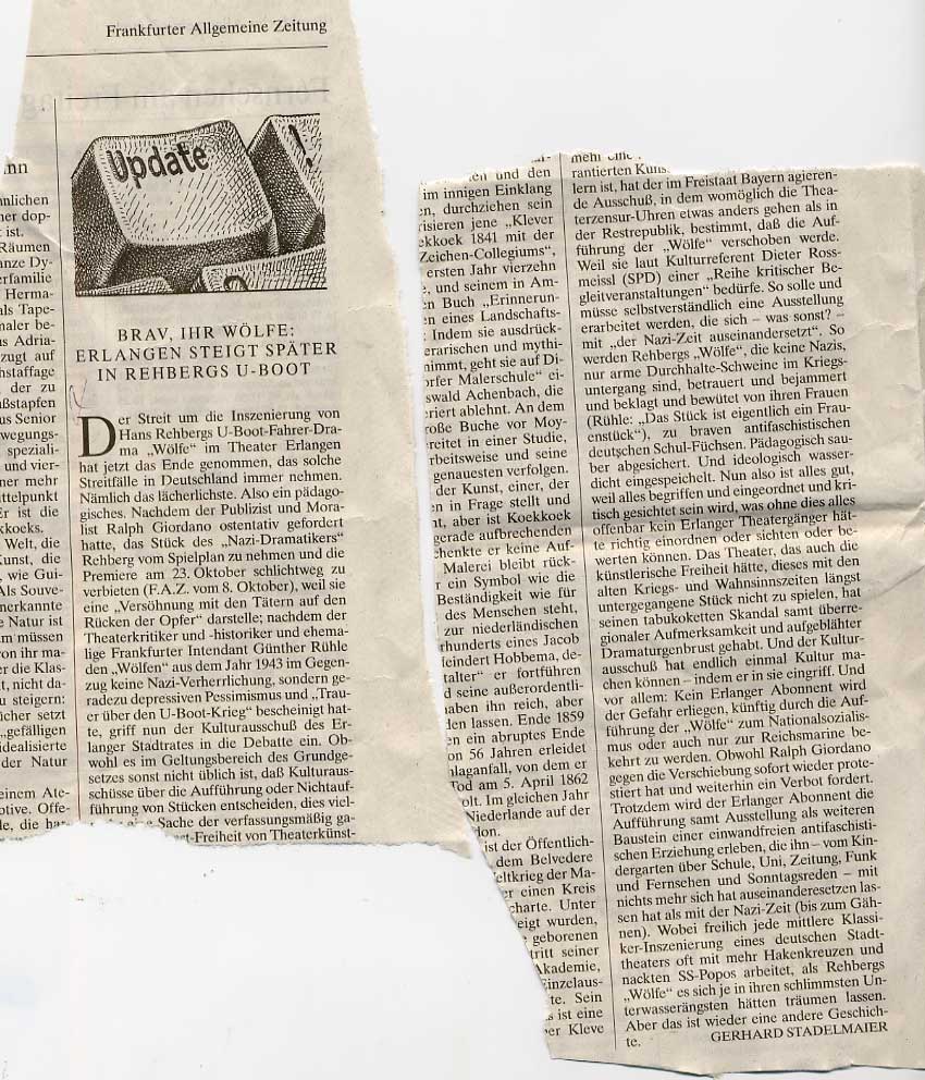 Und so sieht sie aus, die Realitätät, in Deutschland. Liebe Susan. Wer nicht dagegen ist, der hat den Untertan von Heine/Staudte nicht gelesen/gesehen und will ihn als volksverhetzend verhindern. Du würdest es hier nicht lange aushalten. Walser dagegen ein zitternder Waisenknabe der Angst, was Du sagen würdest.
