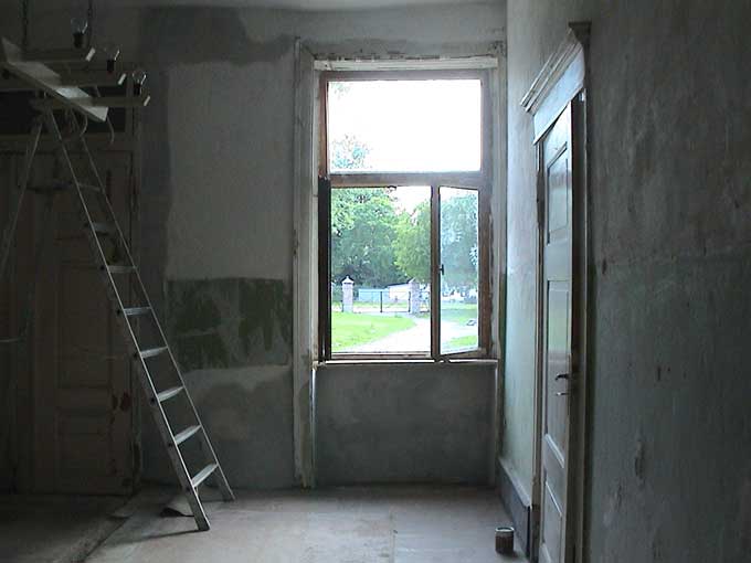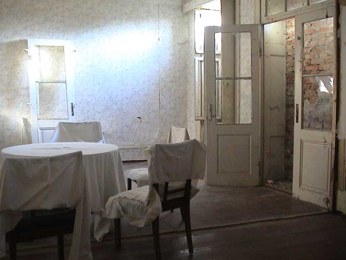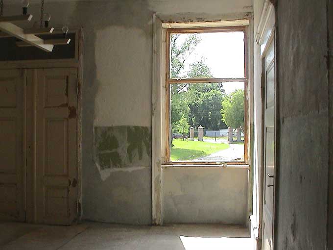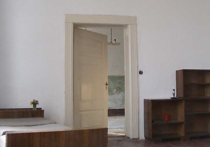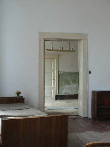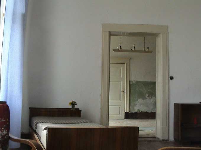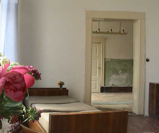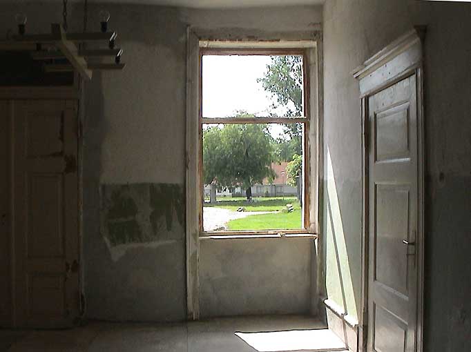die Alten den Hof aus dem Fenster sahen nun mit DDR Fenster und wiener Lampe.
