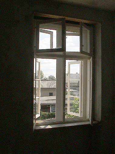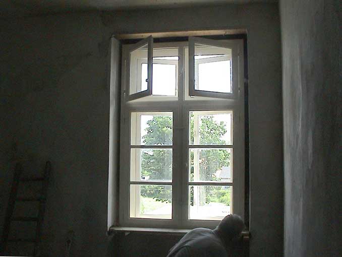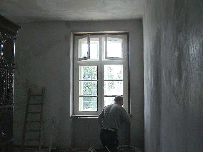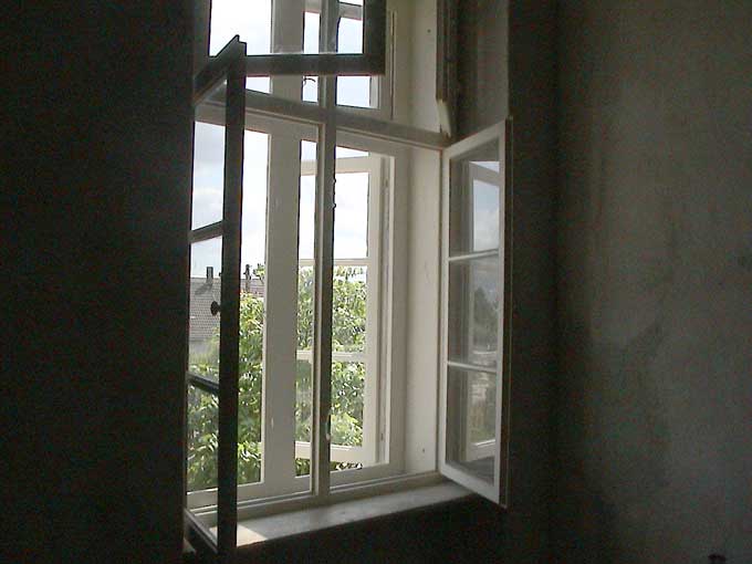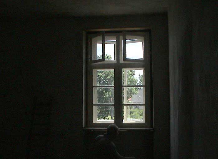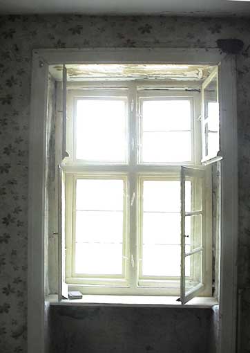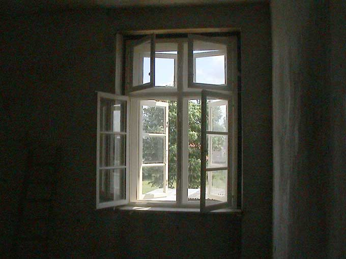 alte Fenster,nun restauriert, im Fremdenzimmer zum Park, dem ehemaligen, ist
