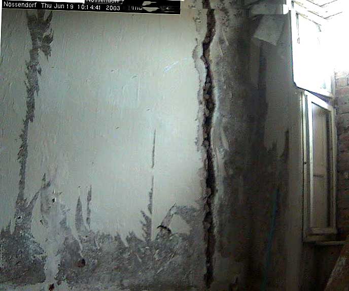 die Tapeten abgerissen wurden, der DDR, kam der Riss in der Mauer dahinter zum