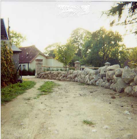 Nun ist die Mauer auf der ehemaligen Kuhstallseite fertig gelegt. Mit Feldsteinen,