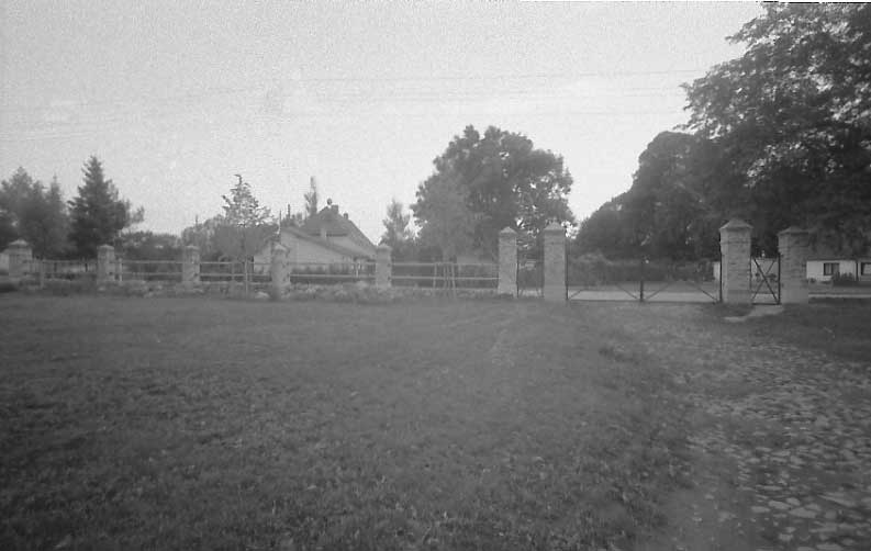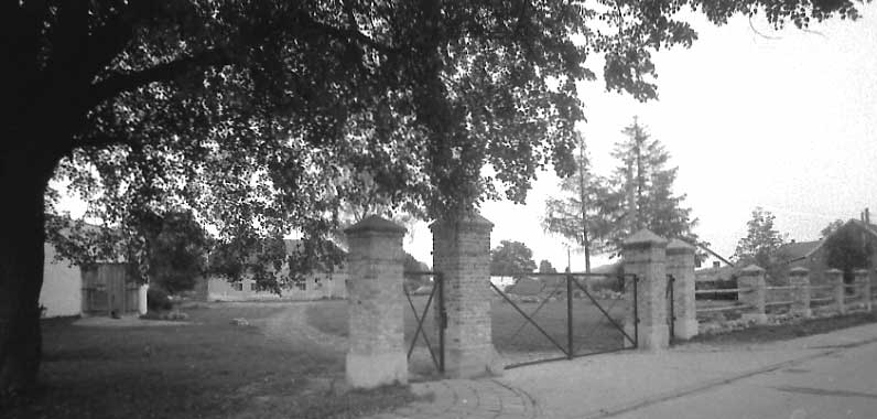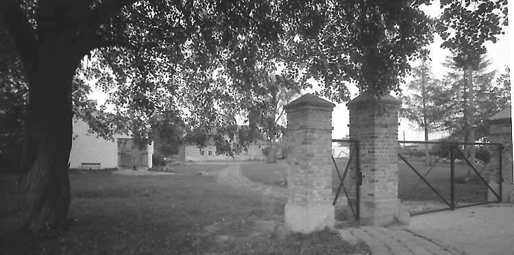 und Zaun dort. Das Gelände eingefasst, die ehemaligen Fundmente benutzt.