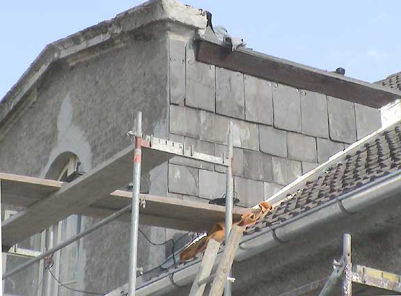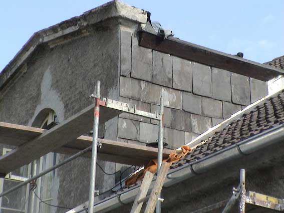 Seitenwände des vorderen Giebels mit Schiefer wieder. Wie auf den Fotos.
