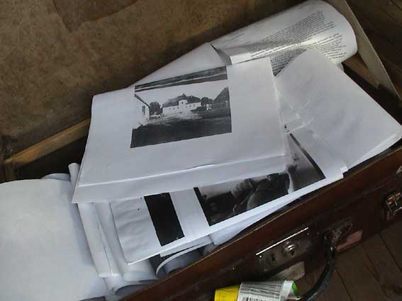 Abfahrt nach Nossendorf. 23.04 H Morgen da. Letzte Entscheidungen. Technische Einrichtung der Kameras, Lieferung der Dinge aus Berlin, die in der Halle sichtbar werden. Abholen der Erde für Paris und des Kinderzimmerfensters.