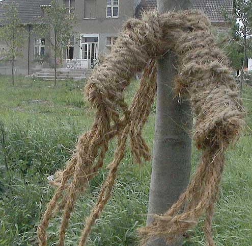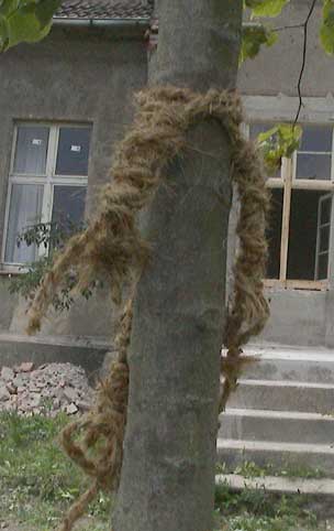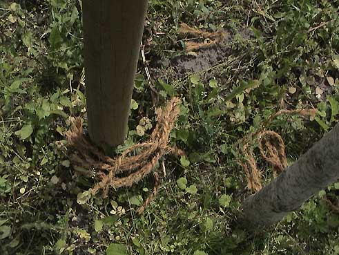 kommen die anderen und demontieren wieder, die Stangen diesmal der Bäume,