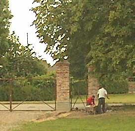 das Herstellen eines Eingangs/Weges neben dem Tor, mit gepflasterten Steinen,