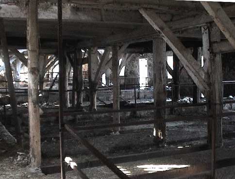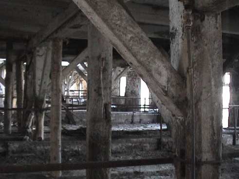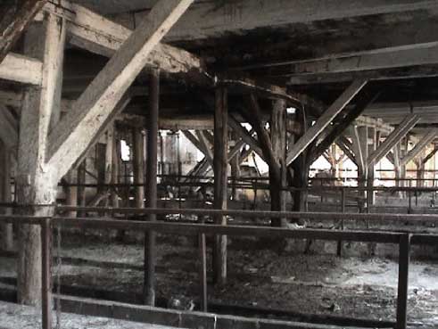 Gerüs im dunklen Raum, als Gehäuste der Welt, wie sie die Balken der