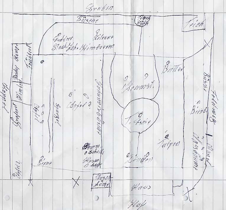 und Kringel gehen wir alte Wege, stehen vor den Bäumen, Hecken und Beeten der