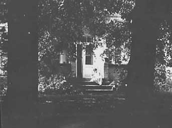 so ein Eingang, rechts vom Haus mit Pfeilern für grosse Fahrzeuge