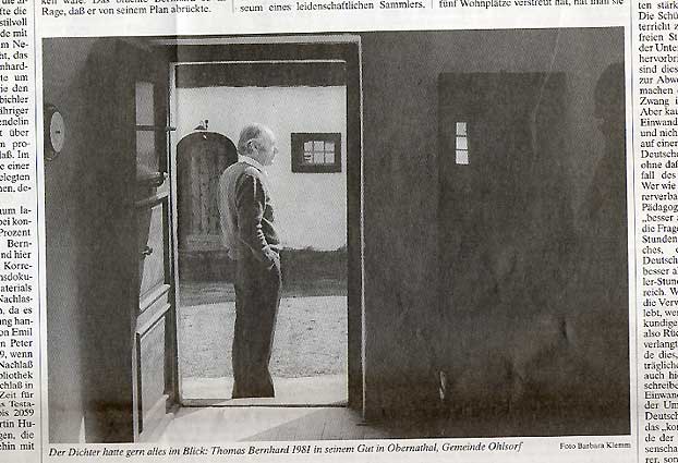 eines Artikels über Thomas Bernhard ein (immerhin finden wir darin den schönen Satz: "Der Schimpfkanonier ist nicht mozartkugelfähig, aber für das Renommee der Kulturlandschaft taugt er allemal.")