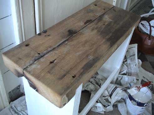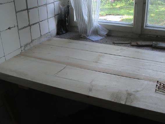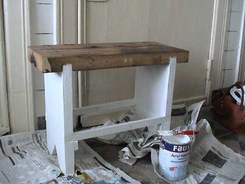eine Bank, vor dem Ofen zu sitzen, oben im Zimmer des Kindes. Aus dem Holz