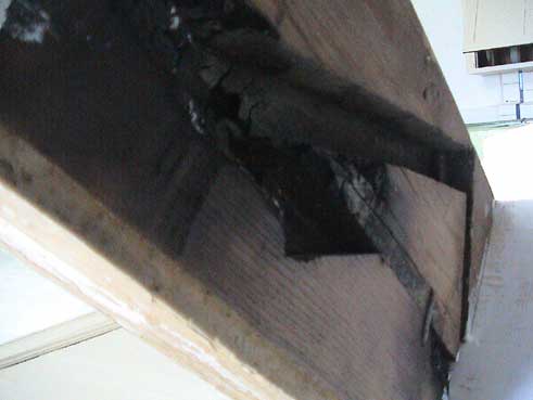 der Treppe, dem übriggebliebenen. Die verbrannten Teile nach unten. Am