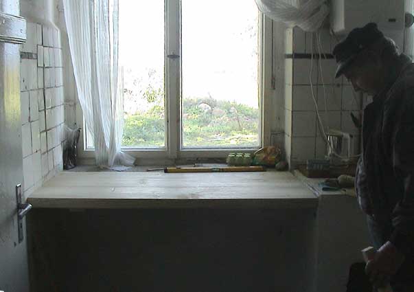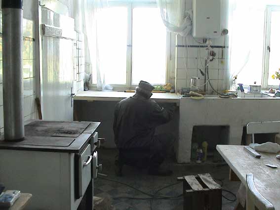 der Küche, vor dem Fenster, gleich neben den Abwaschbecken von damals