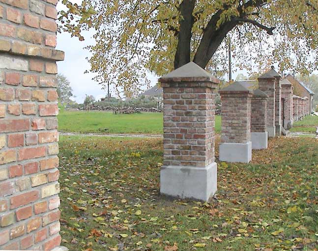 eine Mauer umgibt nun Haus und Hof, wo einst der Kuhstall war,