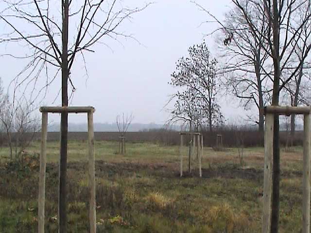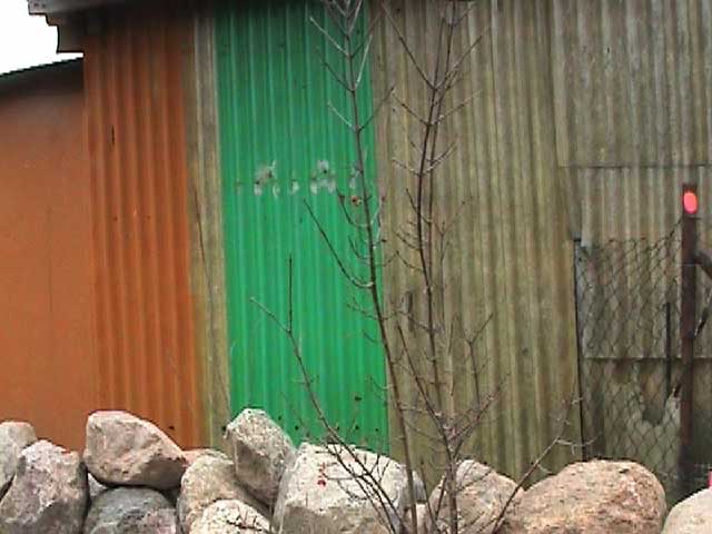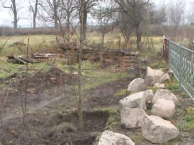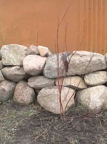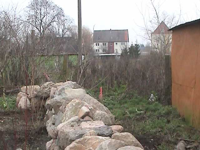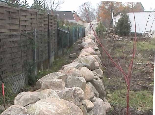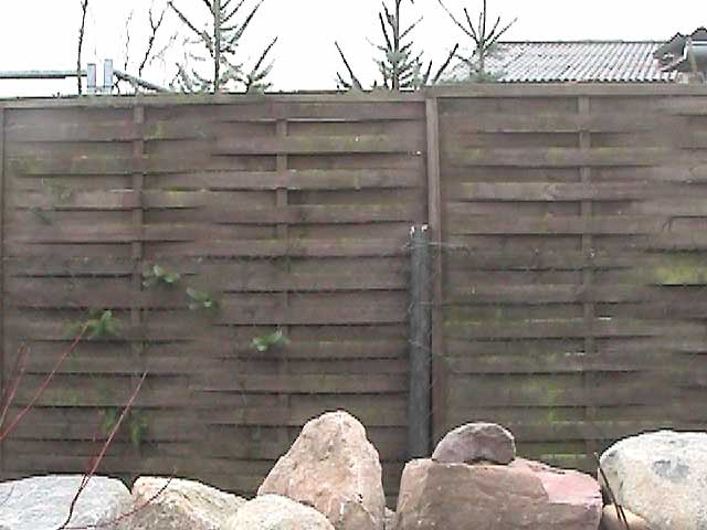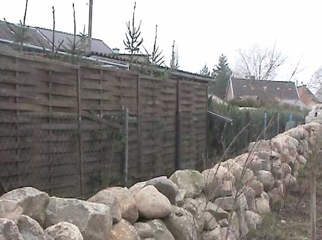 Zaun, Bretterverschlag aus Kunststoff, abgepolstert von Korniferenschichten,