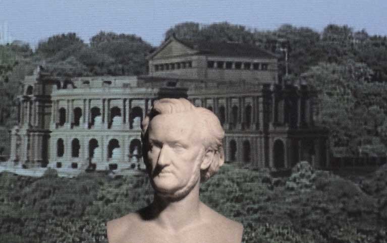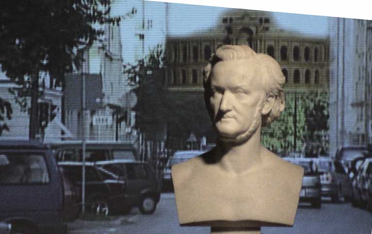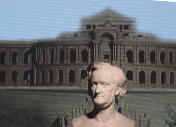 in der sonst unerheblichen RW-Ausstellung in München (aber Mishima! jetzt auch hier mit Ton:1.November) gibt es eine filmisch animierte Darstellung aus dem Fundus des Stadtmuseums zum geplanten RWTheater(G.Semper) in München zur Zeit Ludwigs, das die Stadt nicht wollte. Man stelle sich vor das in München, statt in Dresden und Bayreuth heute. Über der Isar, zwischen Parlament und Friedensengel.Kapitel Politik und Kunst, im Gefälle der Zeiten..