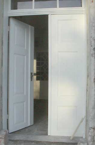 Eingang mit Backsteinen ausgelegt,