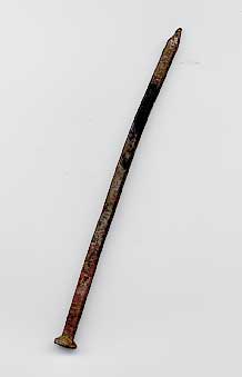 Eisennagel, Handgeschmiedet. Zur Zeit der Erbauung des Hauses. Vor hundertsiebzig