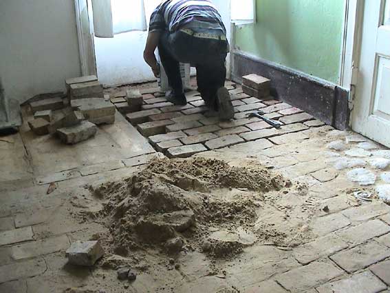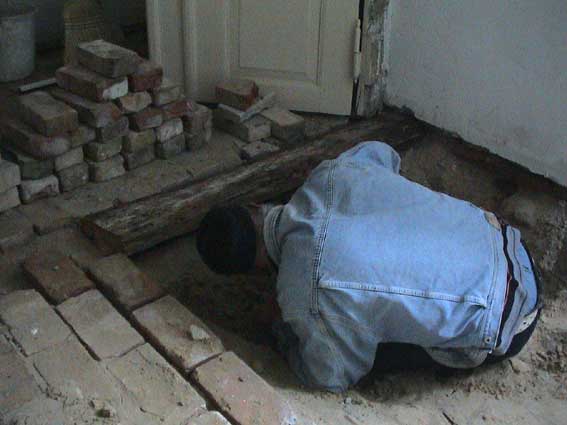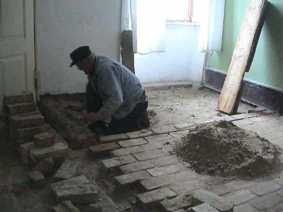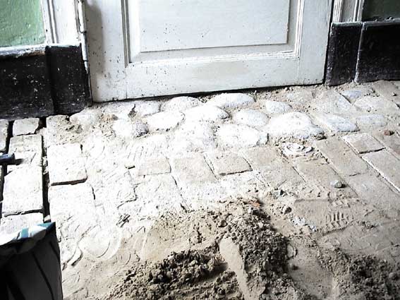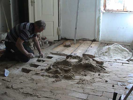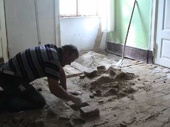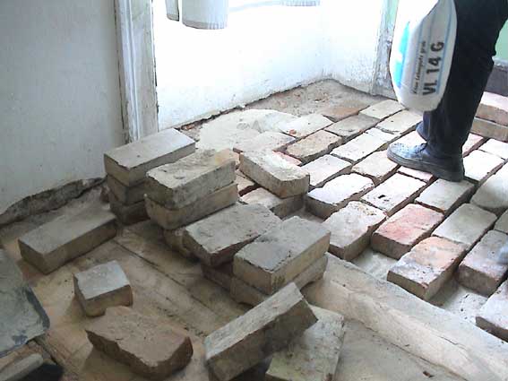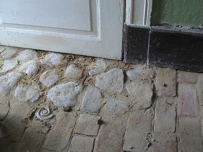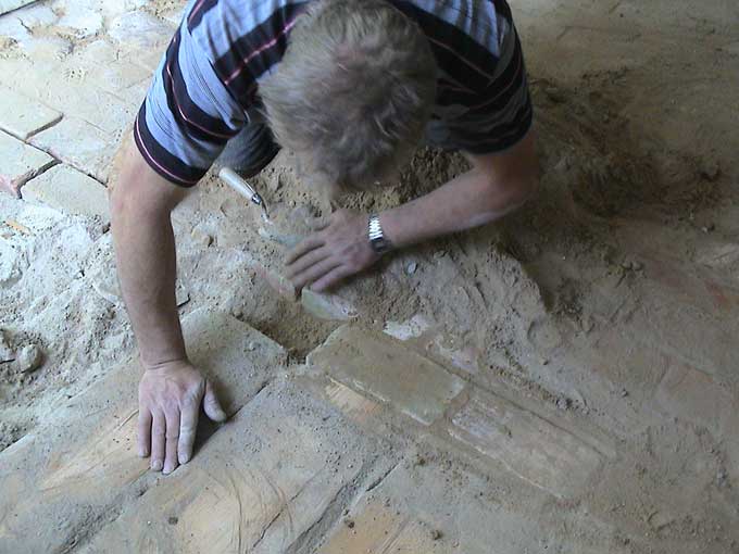 Einzufügen in den Boden aus den Backsteinresten der Ställe und des Waschhauses.