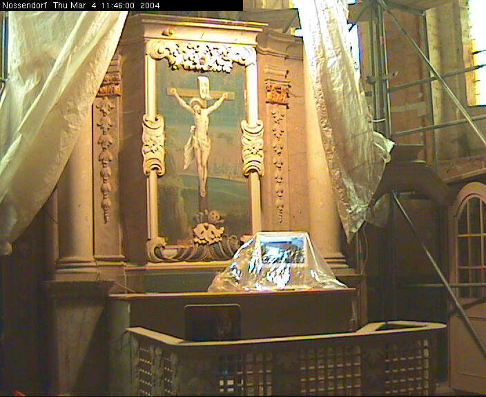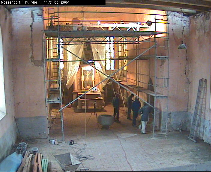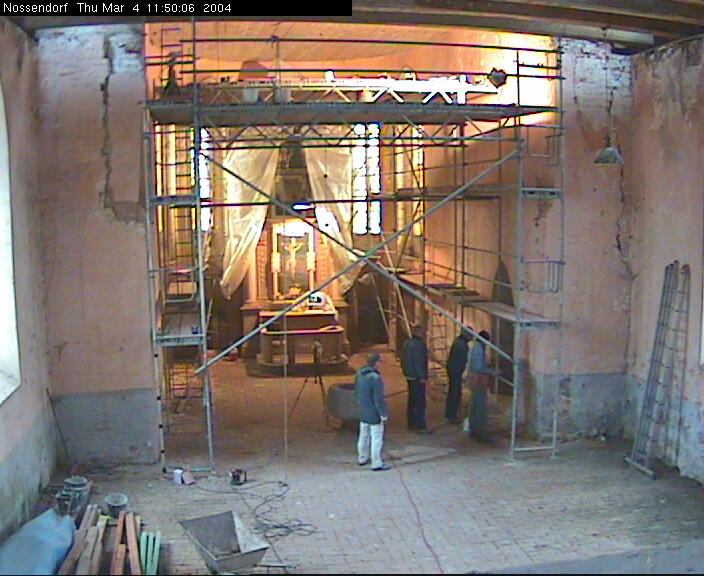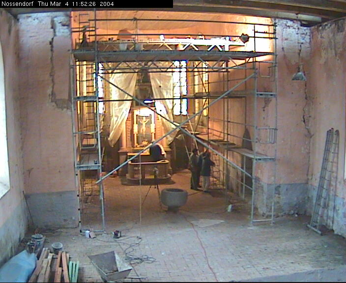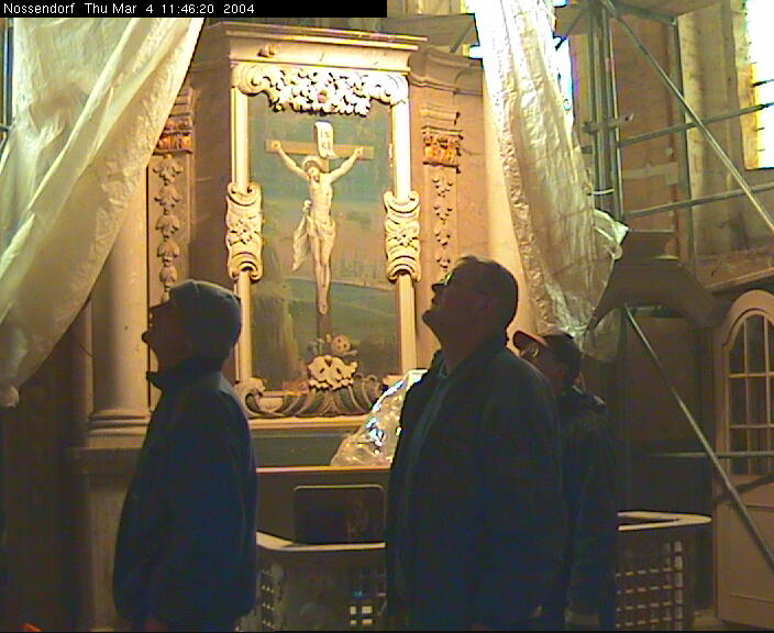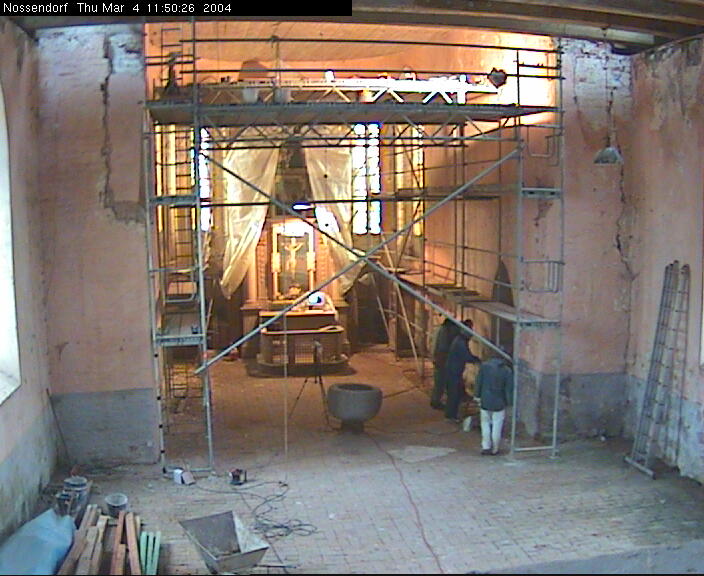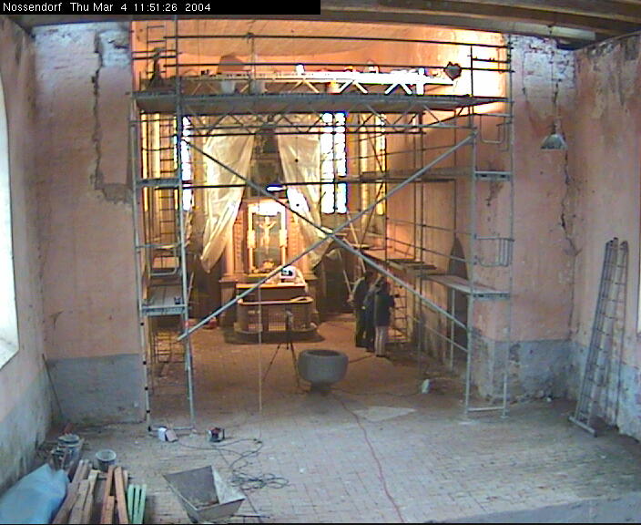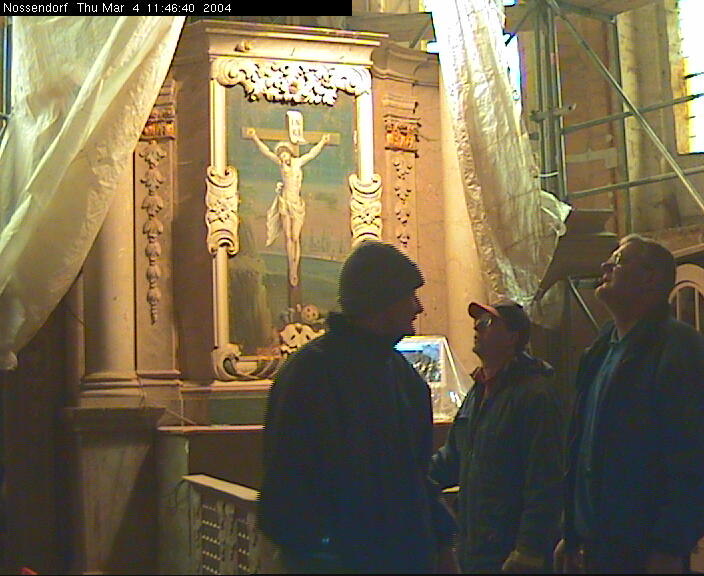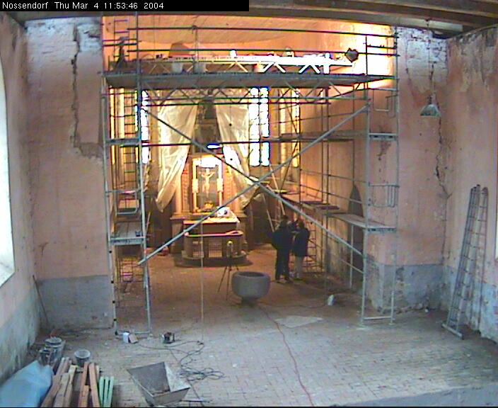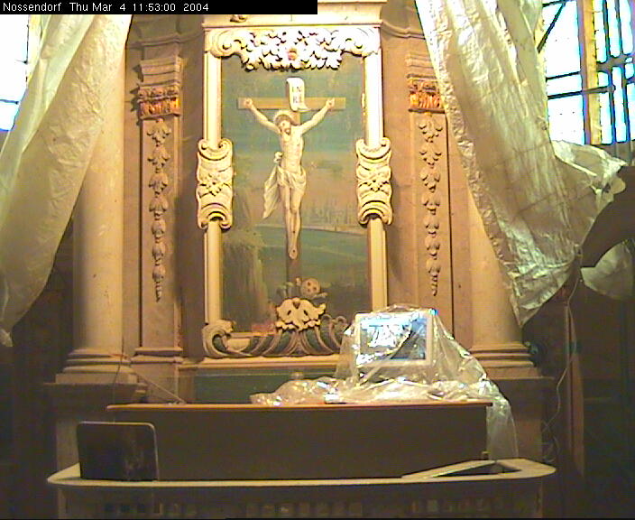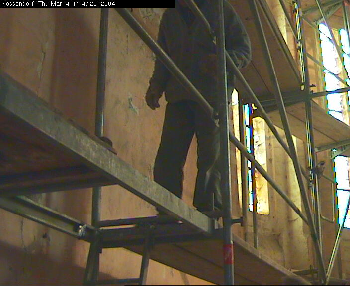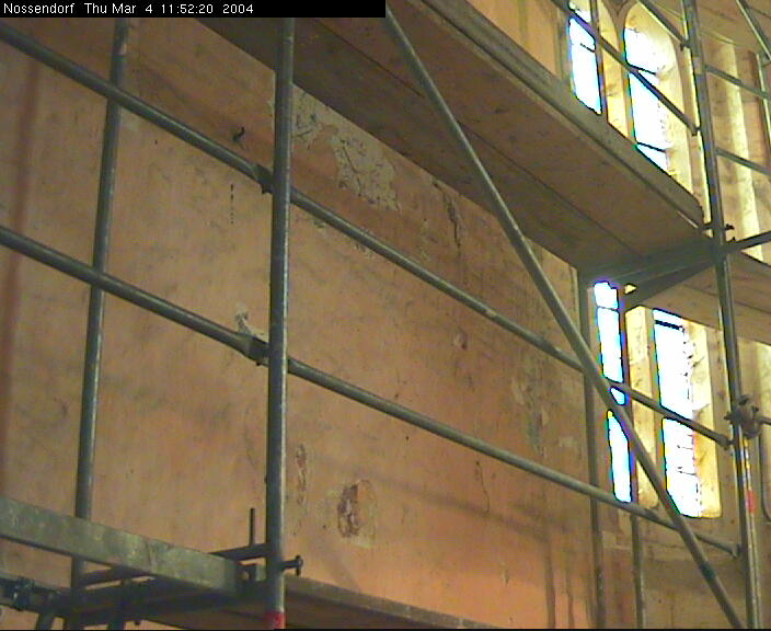 Freitag, hier gestern mittag Kamera 3 und 4 : unter der Farbe an der Wand: ein Wappen aus dem Mittelalter :
