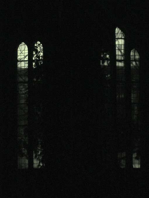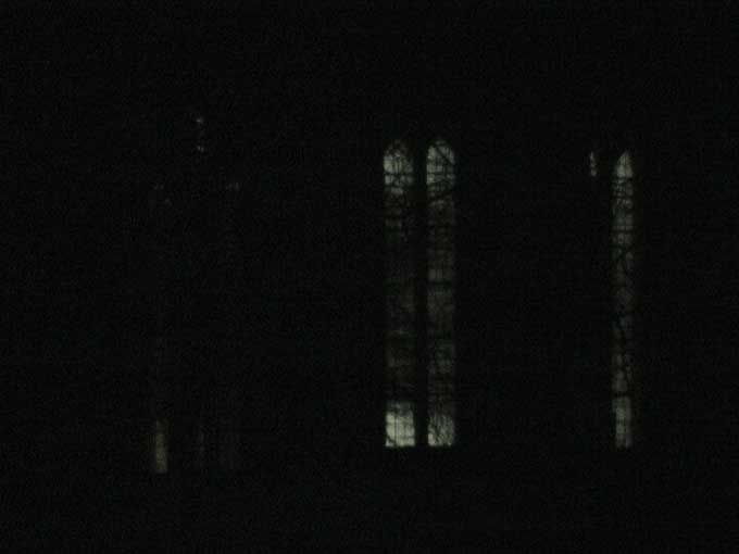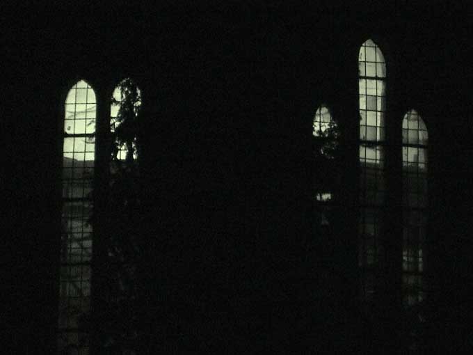Was die Kameras nicht sehen. Die Kirchenfenster, wenn’s draußen dunkel ist. Wie Weihnachten vor 60 Jahren. “Das ganze Dorf schläft und