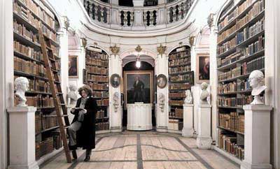 wie die Schillers und Nietzsches einfach in Regalen neben dem Eingang in Kisten