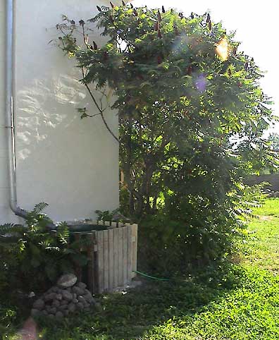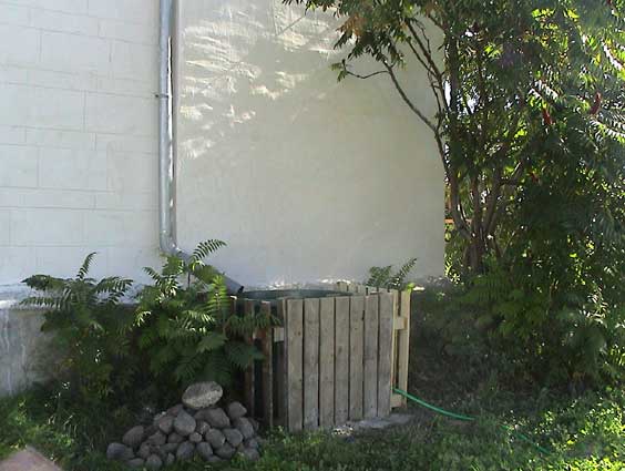 Plastiktonnen für die Regen -abflussrohre eingebaut in Europaletten