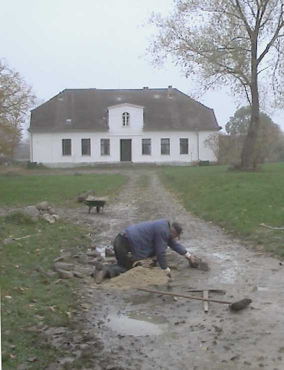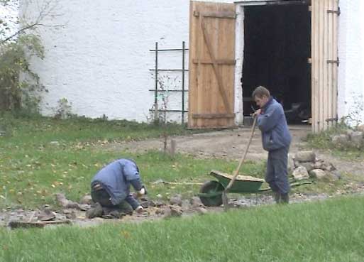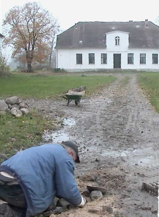 letzte Arbeit in diesem Jahr geschah am Pflaster des Hofes, das jetzt als Zufahrt