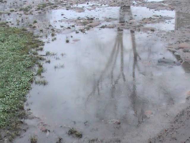 aufgefüllt wurde. Darum kann das Wasser nicht ablaufen. Von der Halle zum Haus
