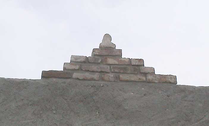zum Haus mit der Hand vor dem rechten Auge. Und zu die Augen nach hinten schauend,