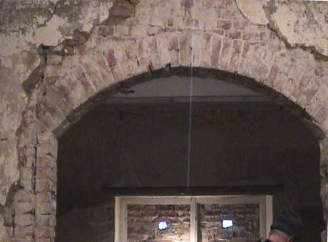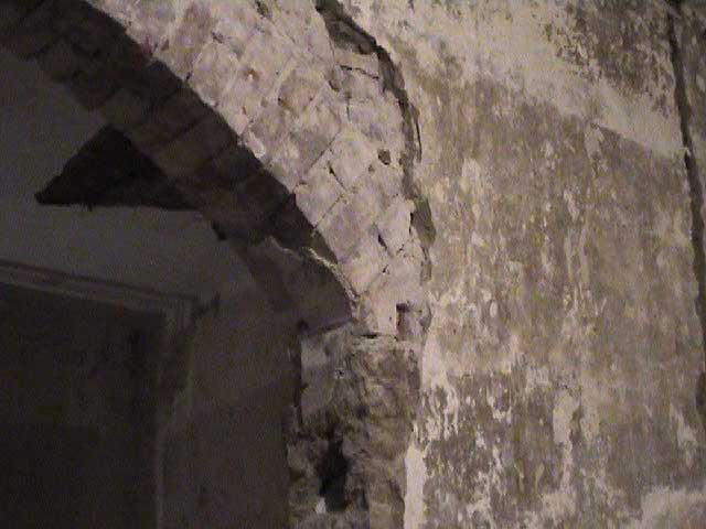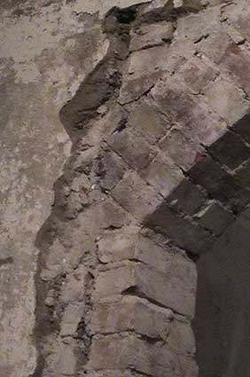 links der Bogen auf alten backsteinen auf gesetzt, rechts auf lehmgefugten Steinen.