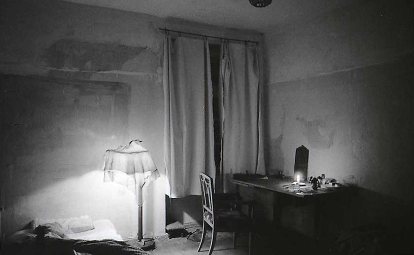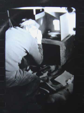Von hinten das Nest der Störche angeklebt beleutet als Wand der Bilder und vorne gekrümmt ins Schneegewölbe. Ohne Kamera gäbs kein Bild.