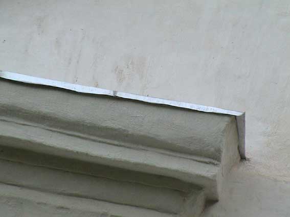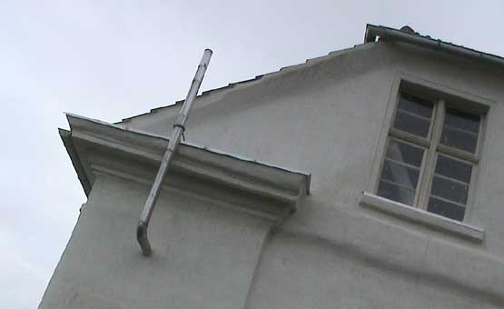 war das Blech, rechts über dem Giebel mit einer Kante nach aussen versehen,
