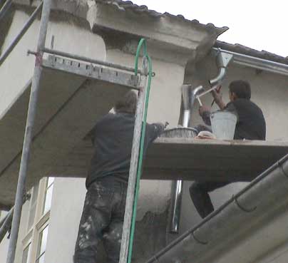 die das Regenwasser zum Dach leitete. Jetzt müssen wir eine Extrarinne