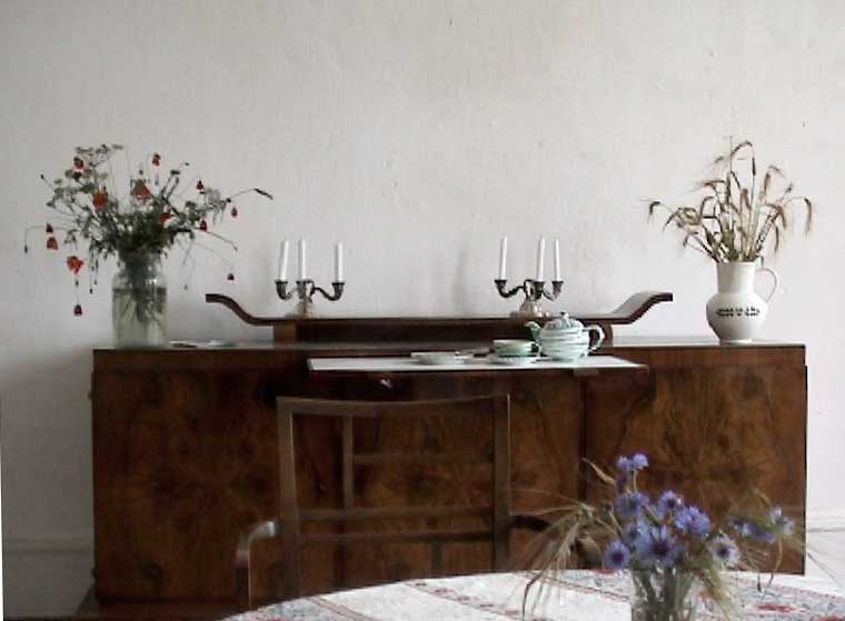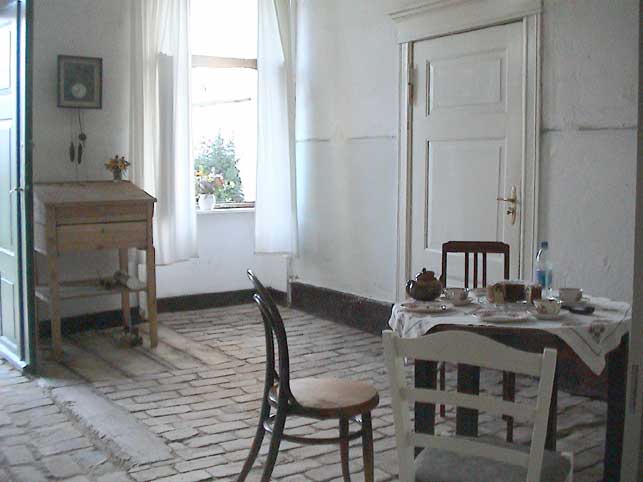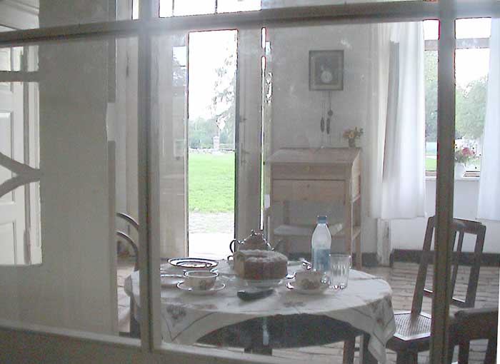Eingang zum blauen Zimmer. Wohinter der Park lag, also die Wiesen und Felder