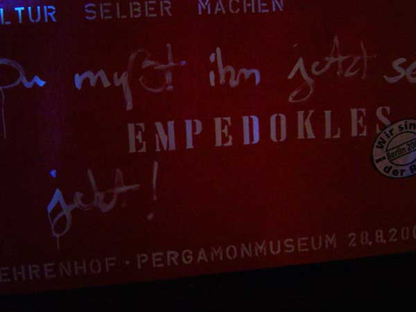 Sonntag, den 29. August 200414. nach TrinitatisBerlin, gestern, Lange Nacht der Museen Empedokles im Ehrenhof des Pergamonmuseums