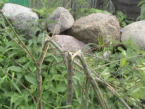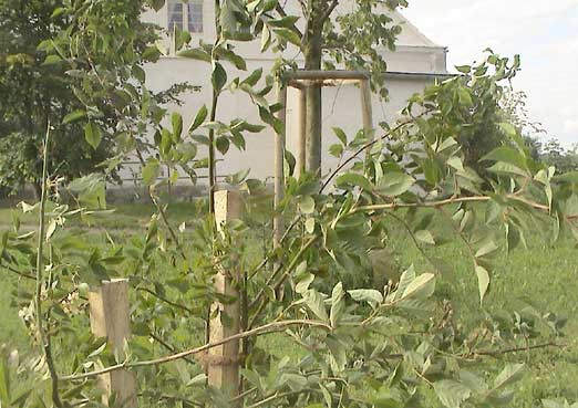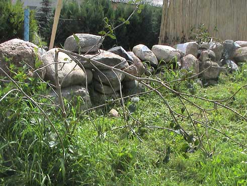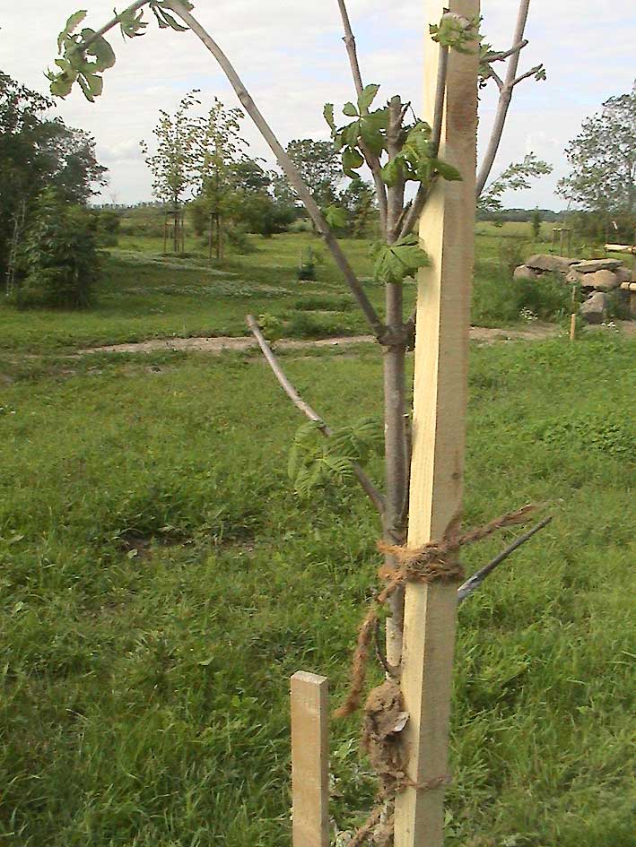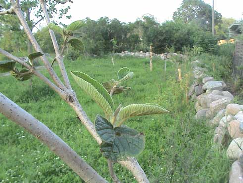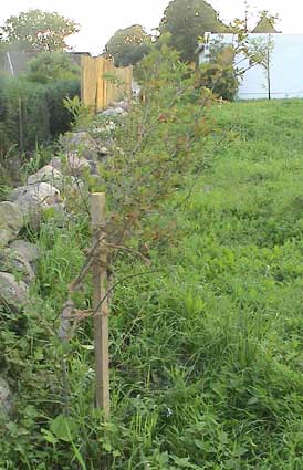 frisch gepflanzten Sträucher und Kastanie an der Grenze zur Tante Remos