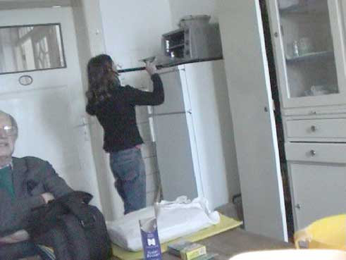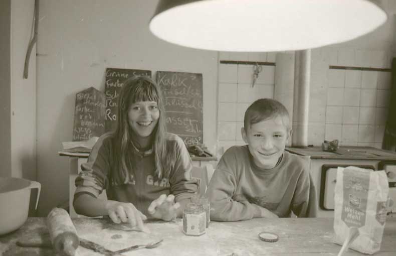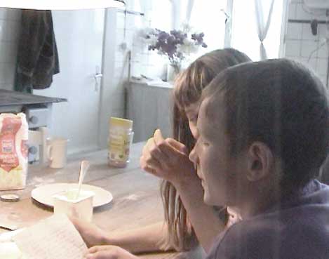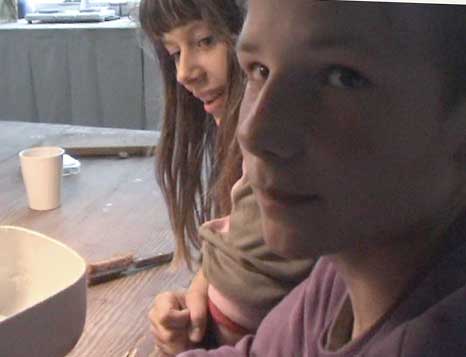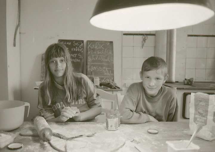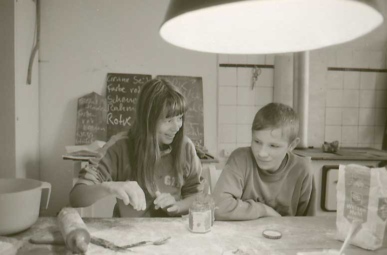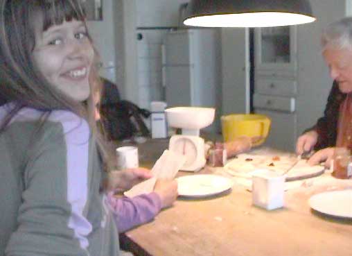 Beim Backen. Übung für die Einweihungsfeier der Kirche. Unser Beitrag