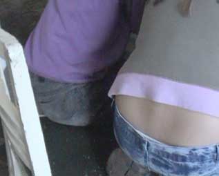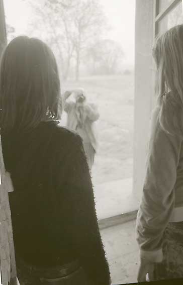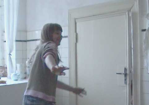 der Freund sie vor die Tür holt, stellt er sie in Pose nebeneinander auf,